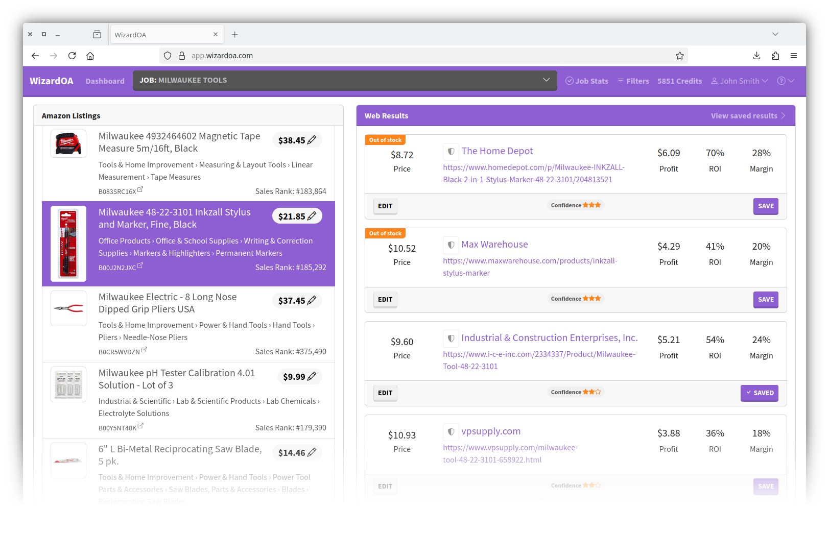 Forget searching the same stores as everyone else. Unlike other online arbitrage software, WizardOA searches the entire web instead of a predefined list of websites. This means you will find profitable products at specialty stores, regional chains, and places you might never know exist otherwise. It's a big ocean out there, and WizardOA will get you on the high seas instead of trolling around the harbor.